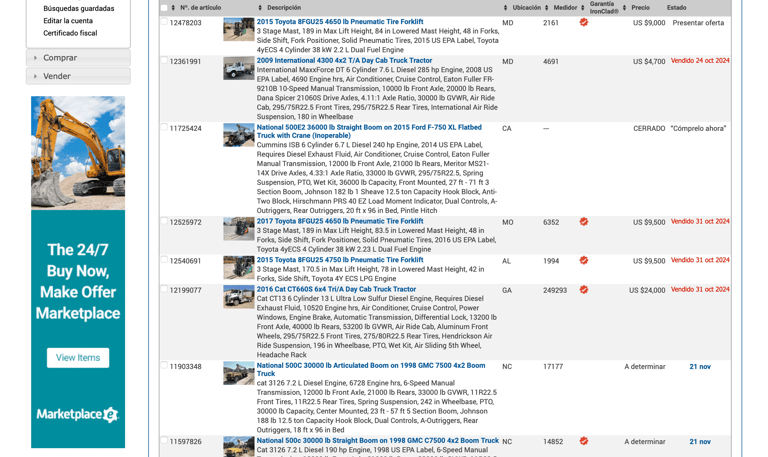 La compra de maquinaria en Estados Unidos de América es más fácil de lo que te imaginas. Nosotros te ayudamos desde la selección del presupuesto, adquisición de los equipos en subastadoras de EUA, traslados de los equipos (en EUA y México), así como la importación. Todo para que no dudes en comprar directamente y a precios más justos.
